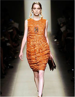 當面料與褶皺相遇,總會有神奇的 火花擦出,看似簡單的款式,經(jīng)過人體 曲線的支撐,就會造就如雕塑一般的硬 朗效果。