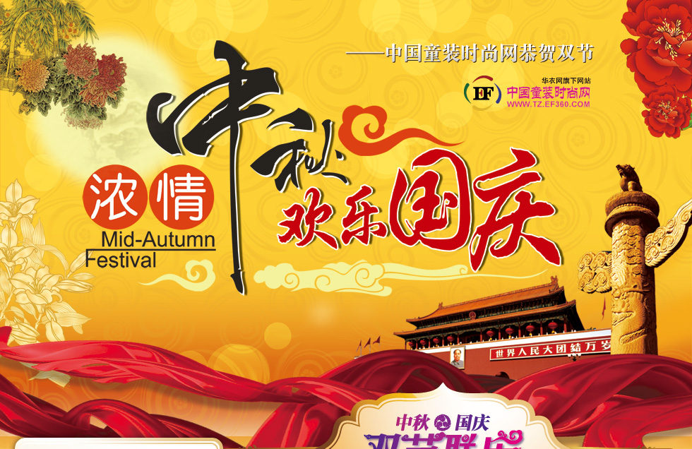 中秋節(jié),傳統(tǒng)節(jié)日之一,為每年農(nóng)歷八月十五,中秋月圓、丹桂飄香,是家人團圓的大好時機。國慶節(jié),每年的10月1日,是舉國歡慶、紀念祖國成立的喜慶節(jié)日。2012中秋節(jié)、2012國慶節(jié)非常巧妙的趕在了一起,值此長假到來之際,童裝時尚網(wǎng)推出中秋國慶雙節(jié)專題,祝福朋友們節(jié)日快樂、幸福安康!