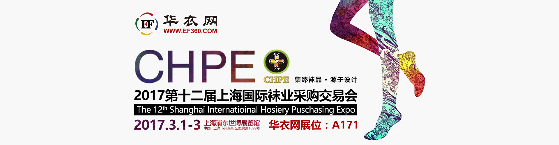 集臻襪品 · 源于設(shè)計(jì)2017第十二屆上海國際襪業(yè)采購交易會(2017 CHPE)將于2017年3月1日-3日,與您相約上海浦東·世博展覽館(國展路1099號)。