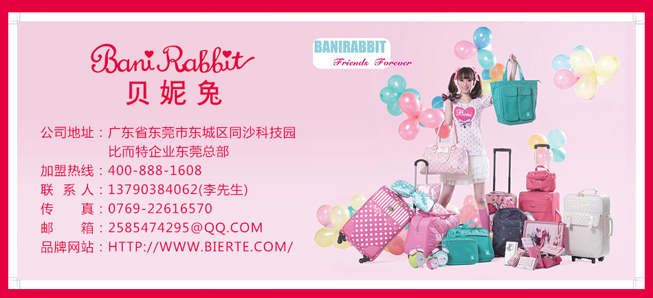 在未來的道路上,比而特人將一如既往的用激情、創(chuàng)造、誠信、實力去打造一個民族的、國際的知名卡通品牌貝妮兔箱包。