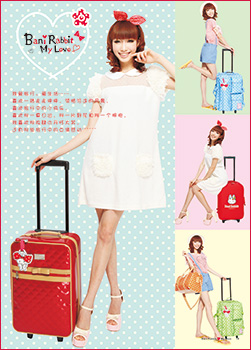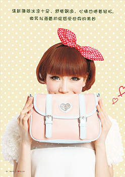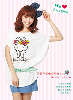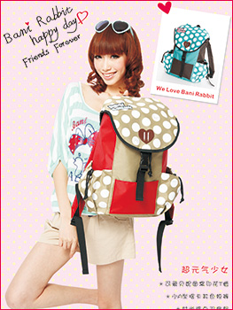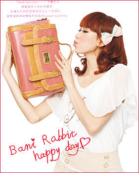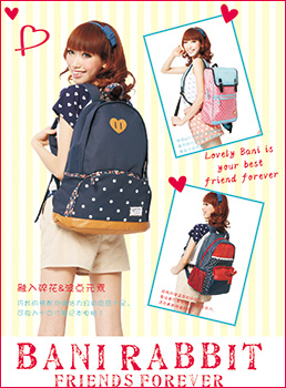 Bani1999年出生在比而特的大家庭里,她清純可愛的形象受到了廣大年輕女孩的青睞,以本質(zhì)的卡通流行元素為主導(dǎo),以簡約時尚為領(lǐng)先,倡導(dǎo)一種開心快樂,富有甜蜜色彩的感性生活。我們設(shè)計師將可愛的貝妮形象滲透到現(xiàn)實生活中去:這只卡通小兔子被印在包袋、錢夾、化妝包、服裝及多種精品的商品上,并行銷全國各地,為青春一族的女孩子們帶來了快樂和滿足她們美麗裝扮的愿望。
