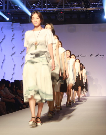 既然是藝術(shù)女裝,迪斯廷.凱的設(shè)計(jì)靈感自然和藝術(shù)不分家。就從此次發(fā)布會(huì)的幾大系列來(lái)說(shuō),都會(huì)系列的靈感源于楊正新的《群雀》和《竹》水墨系列作品及當(dāng)代畫(huà)家吳冠中寫(xiě)意山水作品的線條元素,設(shè)計(jì)出山水空靈和現(xiàn)代隨性兼具的系列作品;摩登系列則選用齊白石的《玉蘭》、門采爾的《房屋與樹(shù)叢》等作品,以大氣的演繹手法使原本平面的繪畫(huà)作品呈現(xiàn)出立體的幾何美感,使設(shè)計(jì)更加國(guó)際化;在精品系列中,以精為核,從寫(xiě)意水墨國(guó)畫(huà)《云與雁》中汲取靈感,并將素雅的花色繪制于韓國(guó)進(jìn)口花紗面料上,精致的呈現(xiàn)出高雅質(zhì)美。