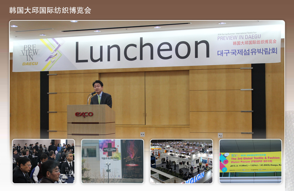 2015年3月11-13日,華衣網(wǎng)應(yīng)應(yīng)韓國纖維產(chǎn)業(yè)聯(lián)合會和AVING NEWS的邀請,出席了在韓國大邱舉辦的2015韓國國際紡織展覽會,針對展會本身及各大參展品牌進行報道。除此之外,華衣網(wǎng)記者還深入展會,對展團的參展情況進行了詳細報道。本屆展會報道以圖文專題形式通過網(wǎng)絡(luò)發(fā)布,敬請關(guān)注!
